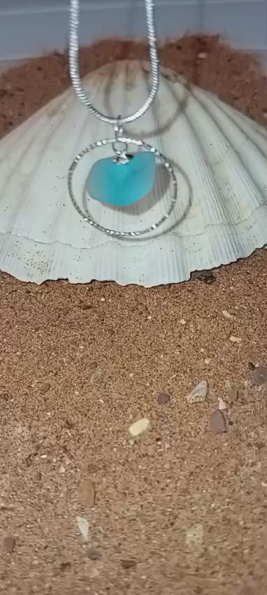 This has to be my favourite piece of jewellery I have made, this was hand picked by me from Devon in August this year. It is a unique shape, and a gorgeous shade of turquoise which is brought out by the silver charm its enclosed in.